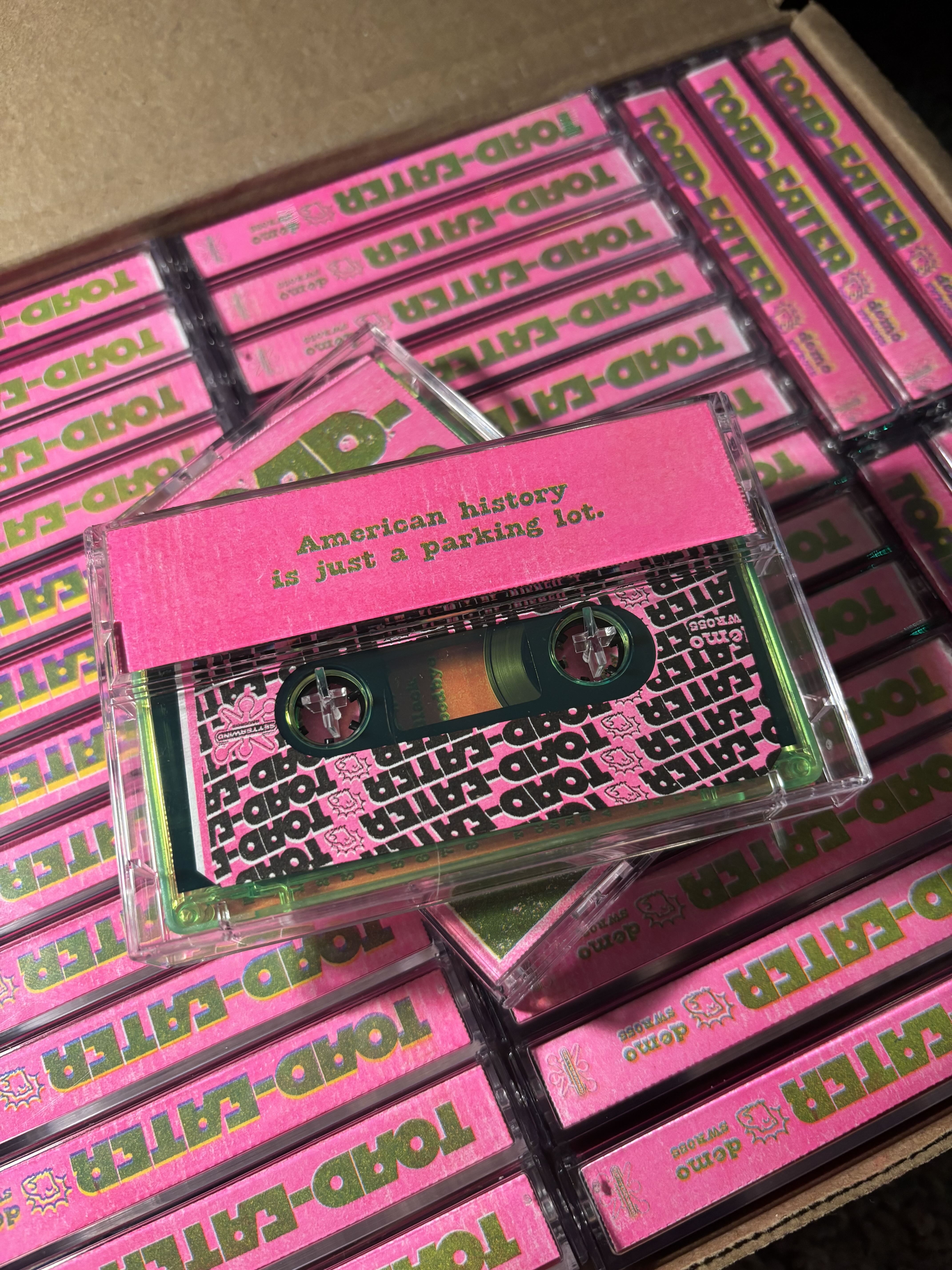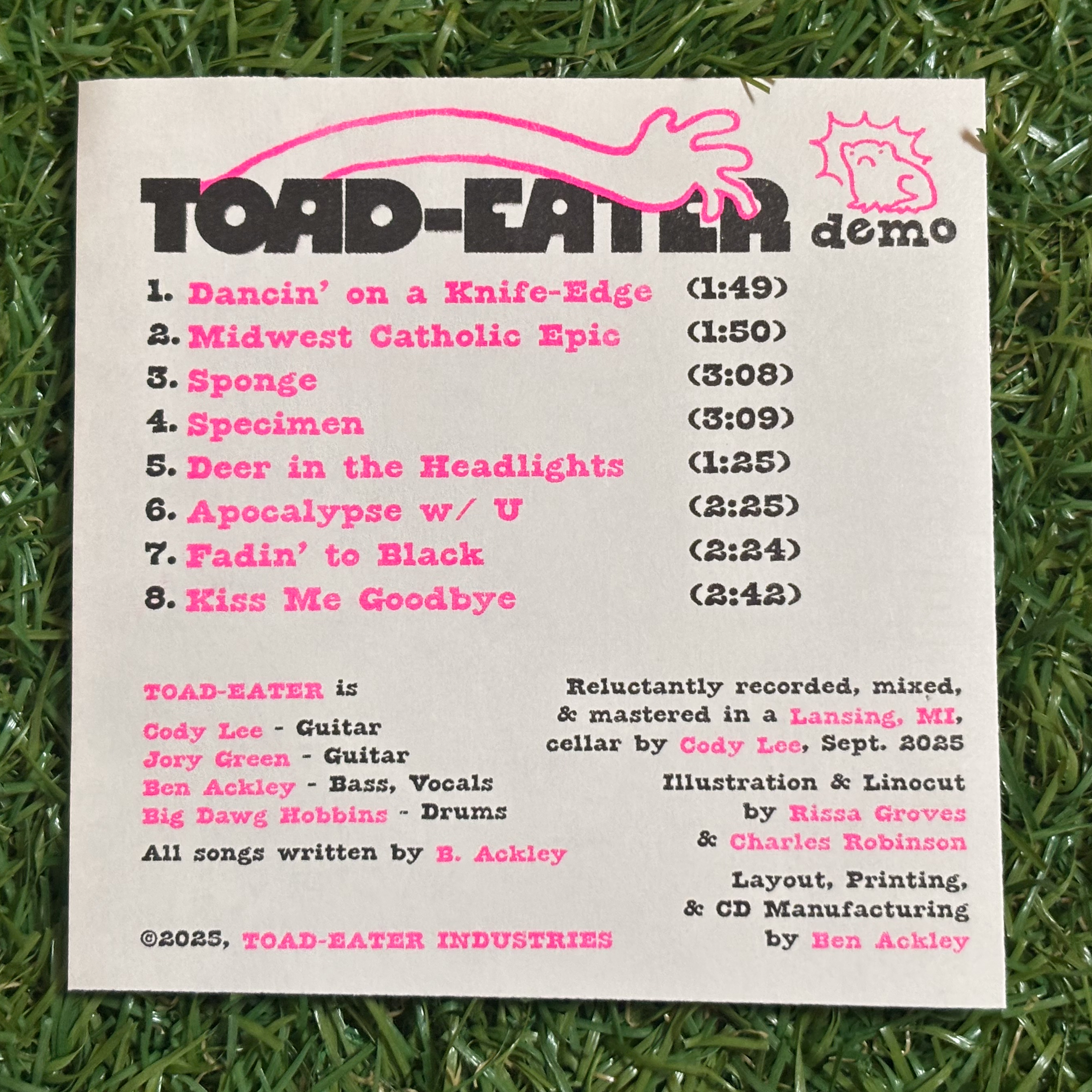 Beyond songwriting, singing, and playing bass, I support the band by doing all our graphic design, printing art for cassettes and CDs, and coding our website (our only web presence) by hand with HTML (just as I did with the site you're looking at now).